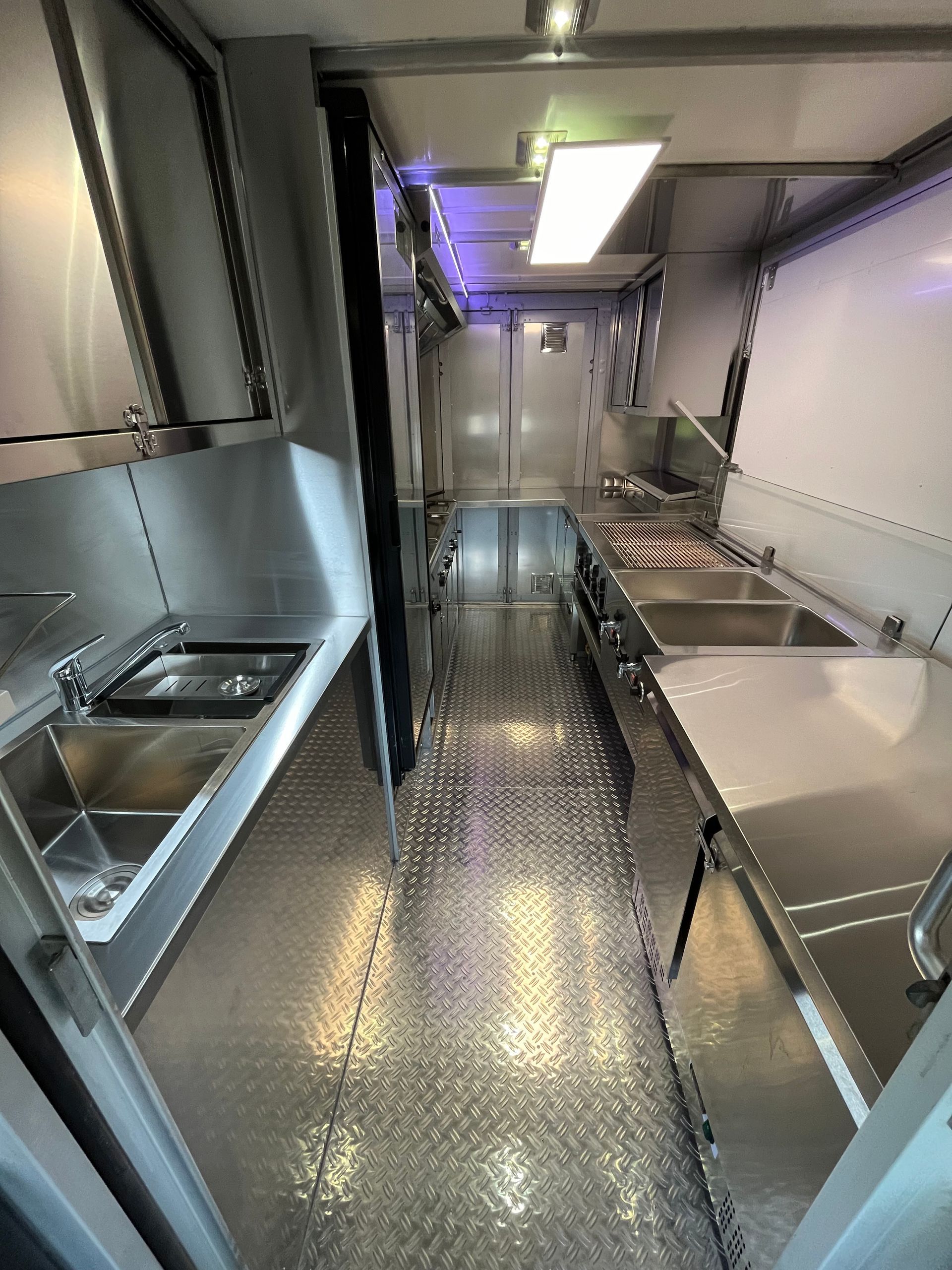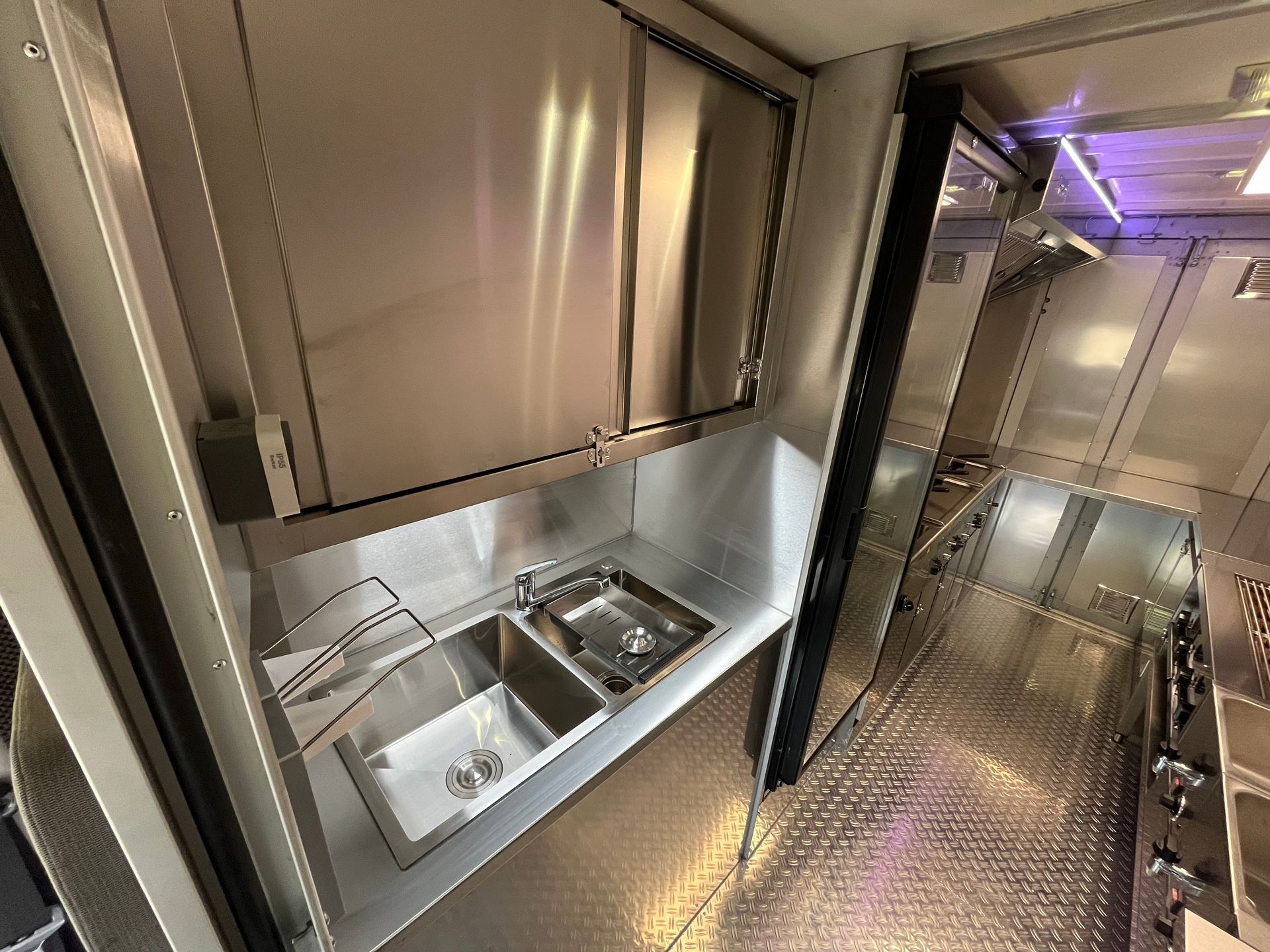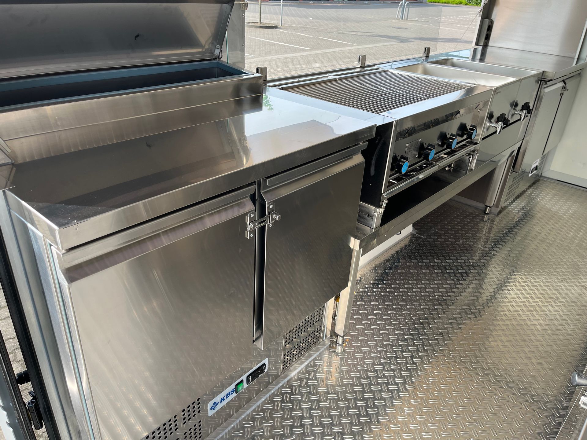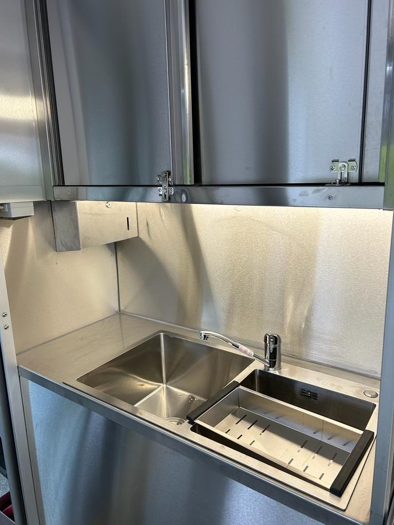 - Arbeitsflächen, Unterschränke und Hängeschränke in hochwertiger Top-Qualität aus stabilen Edelstahl.